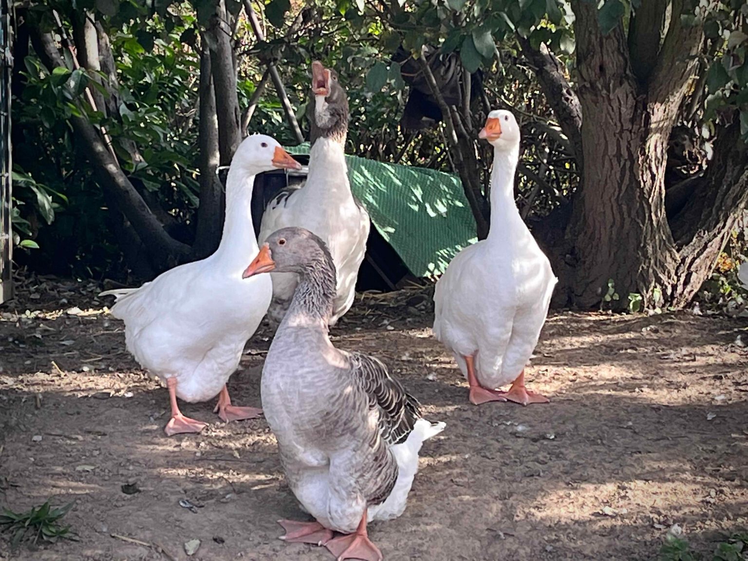 An der kein Gemüse auf uns wartete, sondern die vier schnatternden Kollegen vom Anfang dieses Beitrags. Sie schlagen die Brücke zu dem, was jetzt kommt: die dunklen Tage brechen an. Aber auch die, an denen man Gänse essen darf! Und sie schnattern. Und schnattern. Bei genauem Hinsehen weißt Du: die haben schon mehr als ein Martinsfest hinter sich. Gut so, Kollegen – was immer Euer Job ist, ihr macht ihn offensichtlich so gut, dass ihr nicht im Topf landet.